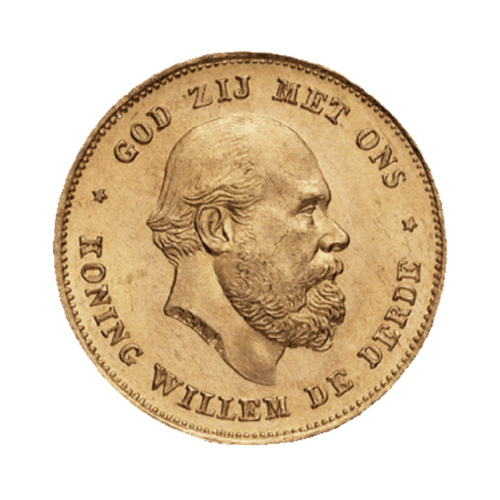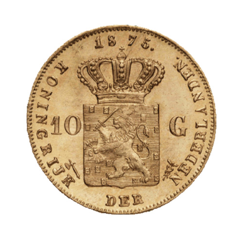 La pièce d’or 10 Florins néerlandaise dont l’inscription énigmatique « 10 G » se lit « 10 Gulden » et se traduit par « 10 Florins ». La 10 Florins apparaît au début du XIXe siècle pour remplacer le ducat, qui n’a plus tellement de sens ni de commodité, en pleine révolution industrielle. Là encore, Napoléon et le système métrique ont fait des émules, bien que des pièces de vingt Francs aient été frappées sous l’Empire à Utrecht, l’étalon choisi restera local. Dans la pratique, on ne trouve que dans les lots de pièces de bourse les pièces du roi Guillaume III et celles de la reine Wilhelmine.