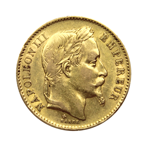 Le Demi-Napoléon ou 10 francs Napoléon a exactement les mêmes caractéristiques qu’une pièce de 20 Francs Napoléon, divisées par 2. Les 10 francs Napoléon ne sont que très rarement en excellent état, ayant beaucoup circulé. Cette série de pièces de 10 Francs Or a été frappée dans deux ateliers monétaires différents : Paris et Strasbourg. On peut en effet y noter la gravure des lettres A ou BB qui correspondent aux ateliers de Paris (A) et Strasbourg (BB). Ces lettres ont pour but de contrôler la production et la mise en circulation des pièces de monnaie. Les autorités monétaires ont très tôt exigé la gravure, sur les pièces produites, de marques permettant d’identifier l’atelier de fabrication des pièces.