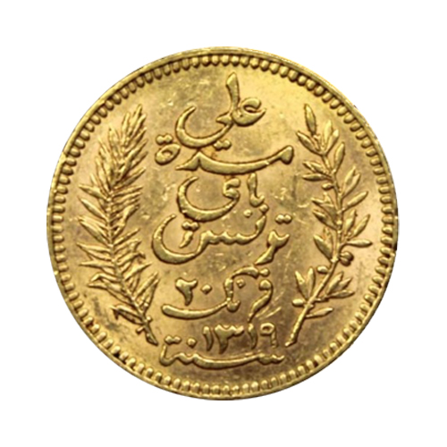 La pièce de 20 Francs Tunisie est frappée entre 1891 et 1928 et a les mêmes caractéristiques de poids, de taille et le même titre que la pièce de 20 Francs Or émise pendant la IIIe République en France. Auparavant, les monnaies de Carthage appartenaient à la série des pièces grecques, puis romaines. Dans une époque plus récente, des pièces de monnaie tunisienne et la 20 francs Tunisie étaient libellées en Sultani et demi Sultani, puis, plus tard, en piastres, les changeant en Francs, sous le Régime français. Les pièces de 20 Francs Tunisie ont été frappées dans l’atelier de fabrication monétaire de Paris comme l’indique le « A » gravé sur l’une de ses deux faces. Les autorités monétaires avaient en effet exigé des ateliers monétaires qu’ils apposent leur marque sur les pièces produites afin qu’ils puissent mieux contrôler la production et la mise en circulation de la monnaie. Depuis le début de la République, elles sont libéllées en dinars.