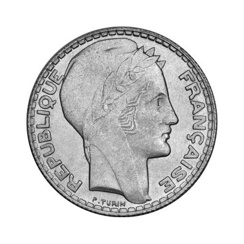 La pièce 20 francs Turin argent est un type de gravure du franc dessiné et gravé par Pierre Turin (1891-1968). La gravure du revers (verso) a été exécutée dans le plus pur style art déco.